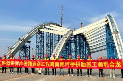 11月11日,隨著最后一段拱肋緩緩吊裝至合龍位置,安徽交建承建的廣德路項目跨南淝河大橋拱肋邊拱順利合龍。
