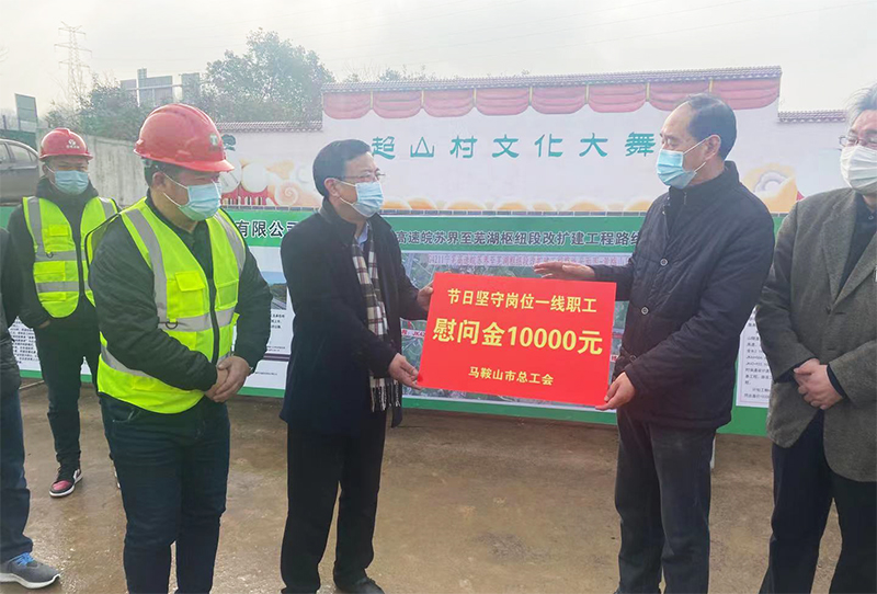 1月28日上午,馬鞍山市人大常委會(huì)黨組成員、一級巡視員、市總工會(huì)主席楊勇義一行深入安徽省交通建設(shè)股份有限公司承建的寧蕪改擴(kuò)建黃梅山保通線項(xiàng)目部,慰問一線員工,值此新春來臨之際,把黨和政府及工會(huì)組織的溫暖送到奮戰(zhàn)一線的員工手中。