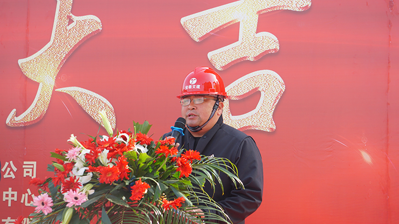 儀式上,鳳臺縣重點工程建設(shè)服務(wù)中心主任李曉輝在致辭中對安八二期項目13#樓封頂表示熱烈祝賀,向日夜奮戰(zhàn)在建設(shè)一線的全體建設(shè)者們致以崇高的敬意和真摯的問候,并希望在后續(xù)的建設(shè)中,全體人員一如既往強(qiáng)化安全管理,嚴(yán)把質(zhì)量關(guān),加快施工進(jìn)度,確保工程如期完成。