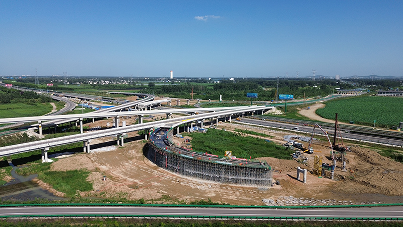 我標段承建的固蚌高速洪集樞紐二期工程,為落地式組合樞紐,向西距蚌埠北互通4.3公里,樞紐互通向南連接國道G329,設(shè)匝道收費站。項目建成后將實現(xiàn)與寧洛高速公路之間的交通轉(zhuǎn)換及國道G329交通直接上下高速公路的功能,便捷了蚌埠市從洪集出入口上下寧洛高速,緩解了該市東北部交通壓力。