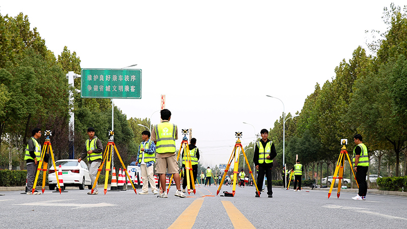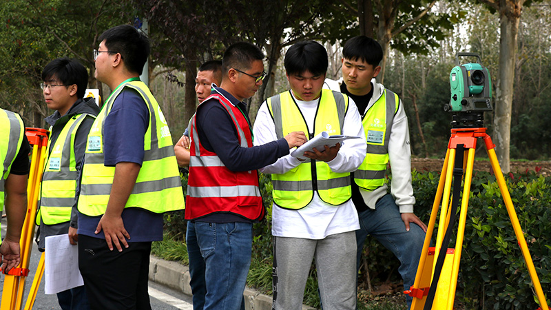 次日上午,在安徽交建大連路項(xiàng)目竣工封閉路段,學(xué)員早已準(zhǔn)備充分、躍躍欲試。在“全站儀對點(diǎn)賽”和“水準(zhǔn)+導(dǎo)線”技能競賽,導(dǎo)師互換小組以裁判的身份進(jìn)行全程跟蹤,依據(jù)各組完成時間、操作規(guī)范性、測量結(jié)果以及第一天的理論成績綜合評判最終結(jié)果。