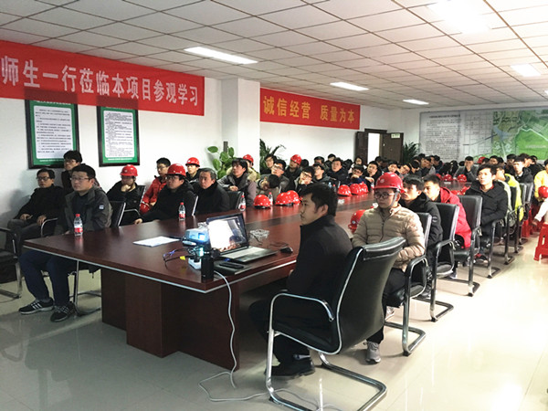 項目總工何輝向安理工大師生介紹了企業文化、項目概述、重難點及施工工藝,通過圖文、模型、視頻等多元化形式,師生門對對項目有了深入了解,何輝理論聯系實際,剖析了建設中存在的重難點及應對措施。