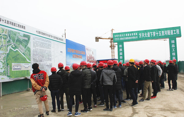 3月8日下午,十五里河濕地工程和方興大道下穿十五里河隧道工程項目(以下簡稱方興大道項目)迎來了安徽理工大學土木工程專業參觀團,近百名學子在項目駐地及施工現場進行了系統的學習、交流。