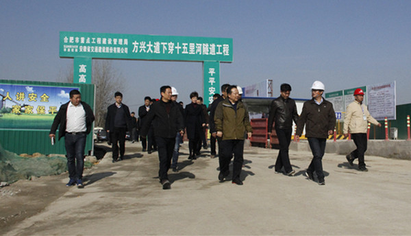 11月25日上午,安徽省委常委、合肥市委書記宋國權,市長凌云深入建設一線,實地調研了安徽交建承建的十五里河濕地工程和方興大道下穿十五里河隧道工程項目.宋書記、凌市長一行到達方興大道項目駐地后,首先詳細了解了項目承建單位—安徽省交通建設股份有限公司的詳細情況;聽取了該項目建設的總體規劃、實施進展、生態文明建設等重點工作的匯報。宋書記高興地指出,安徽交建作為合肥市大建設的先頭軍、排頭兵要有使命意識、責任擔當,工程建設過程中要注重生態環境保護,牢固樹立和踐行生態文明觀、科學發展觀。
