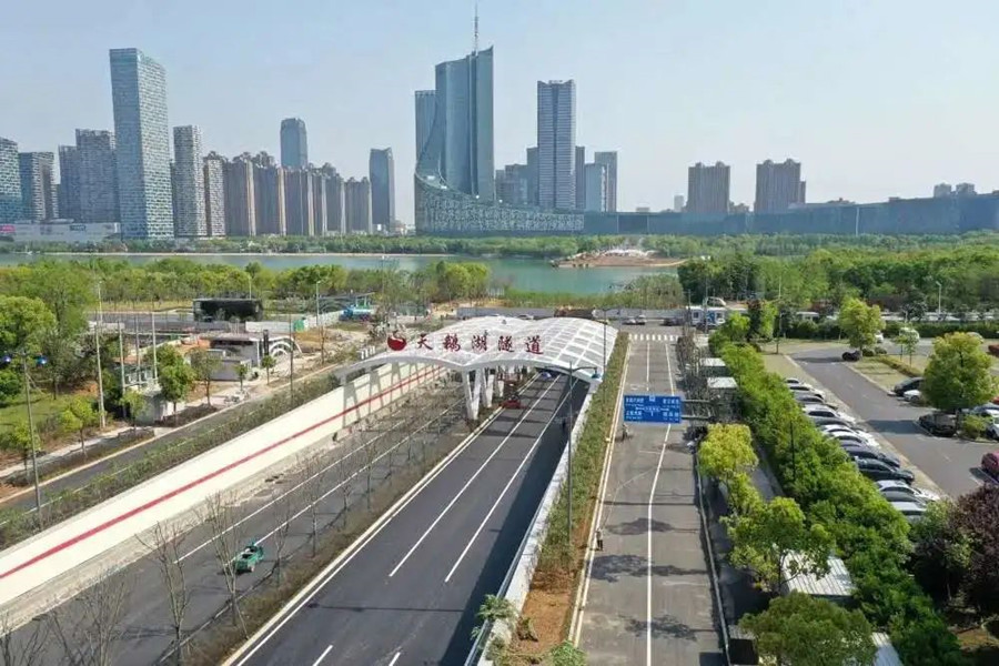 51日早上八時,由安徽省交通建設股份有限公司承建的懷寧路下穿天鵝湖隧道工程正式放行通車,市民朋友僅需1分鐘便可驅車穿越天鵝湖底,完美抵達對岸。通行采用雙幅雙向六車道通行形式,但受祁門路積澇點整治工程影響,懷寧路與祁門路交口先期采用西半幅雙向通行。