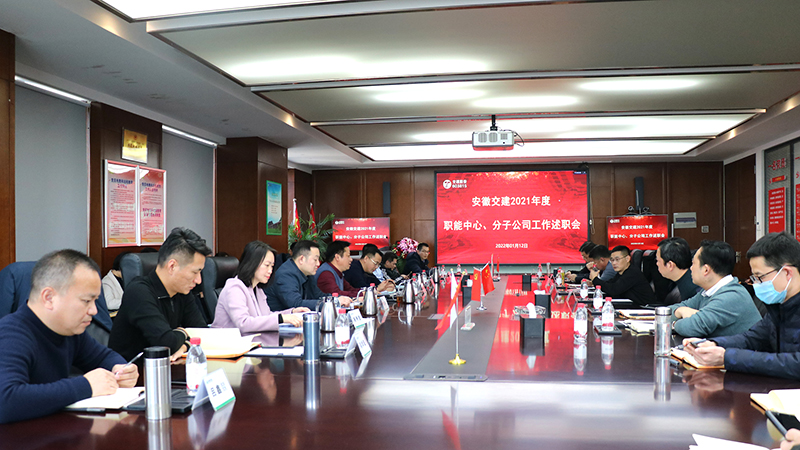 1月12日下午,安徽省交通建設股份有限公司2021年度職能中心、分子公司工作述職會在20樓會議室召開。集團副總裁公司董事何林海、安徽交建經營層、管理層、職能中心及分子公司正副職參加會議,會議由公司常務副總裁儲根法主持。