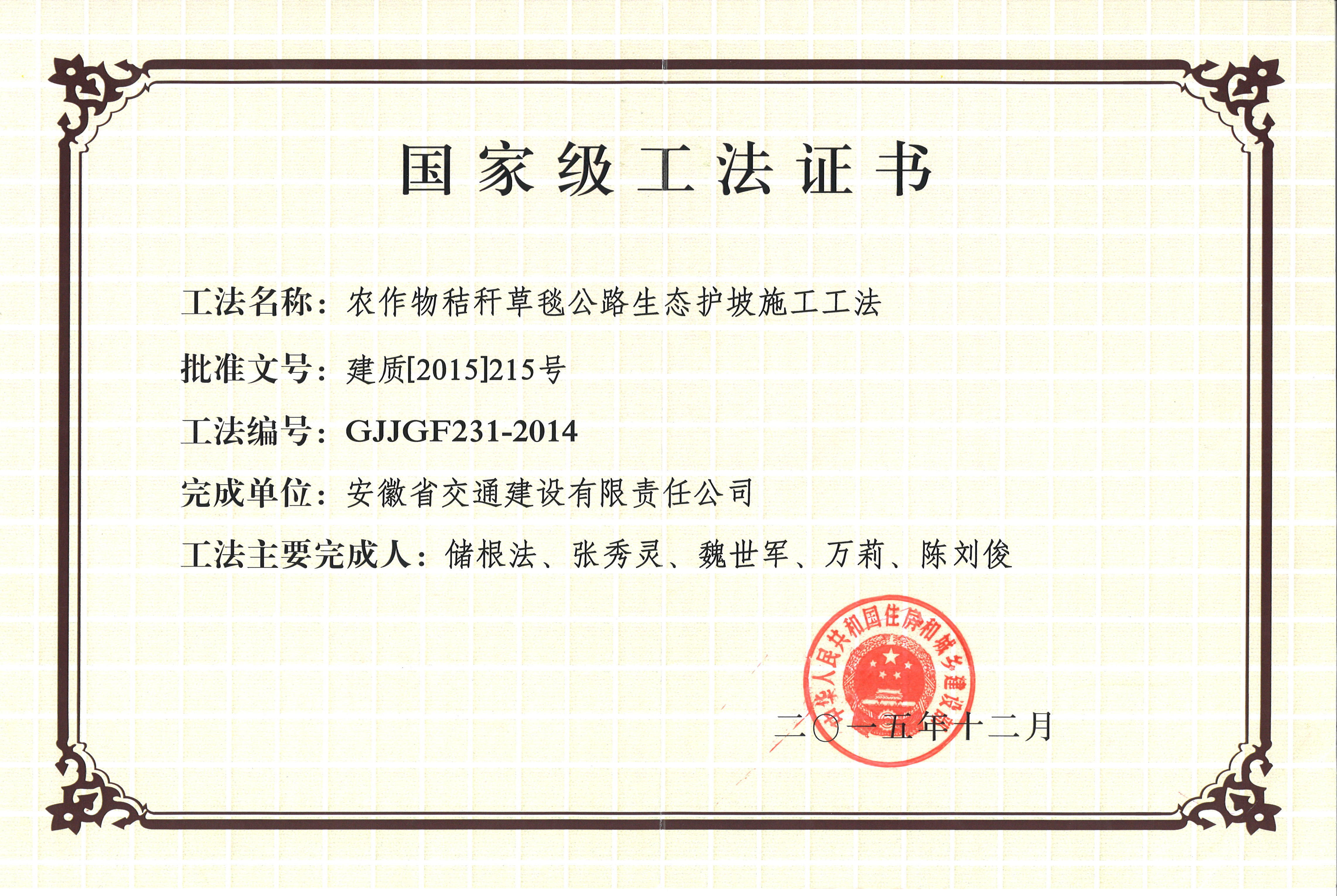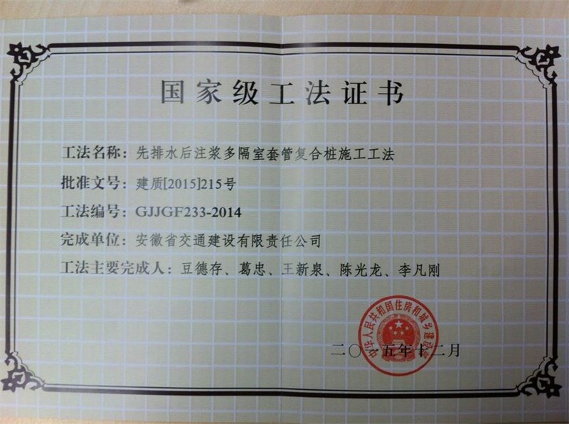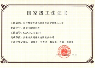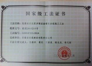 國家級工法證書